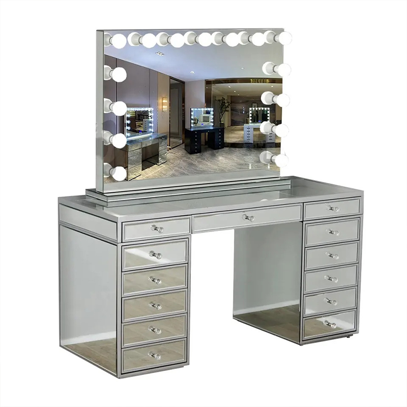 You are here: Home » Mirrored Furniture » Vanity sets » Mirror Vanity Set Silver 13 Draw
