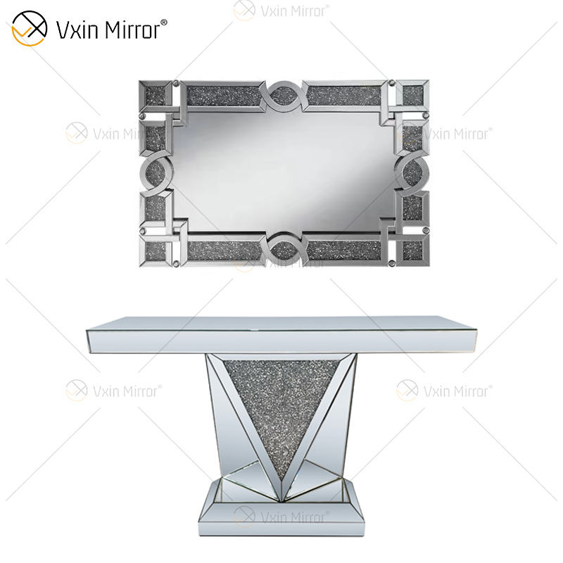 Vxin Mirror Siver Crushed Diamond Glass Consle Table With Mirror